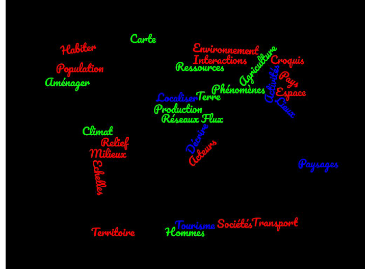 Cependant, les élèves ont été plus en difficulté sur l’élaboration des nuages de mots concernant la géopolitique et la science politique. Il pourrait être pertinent de compléter les nuages de mots obtenus à l’issue de la séquence d’introduction.