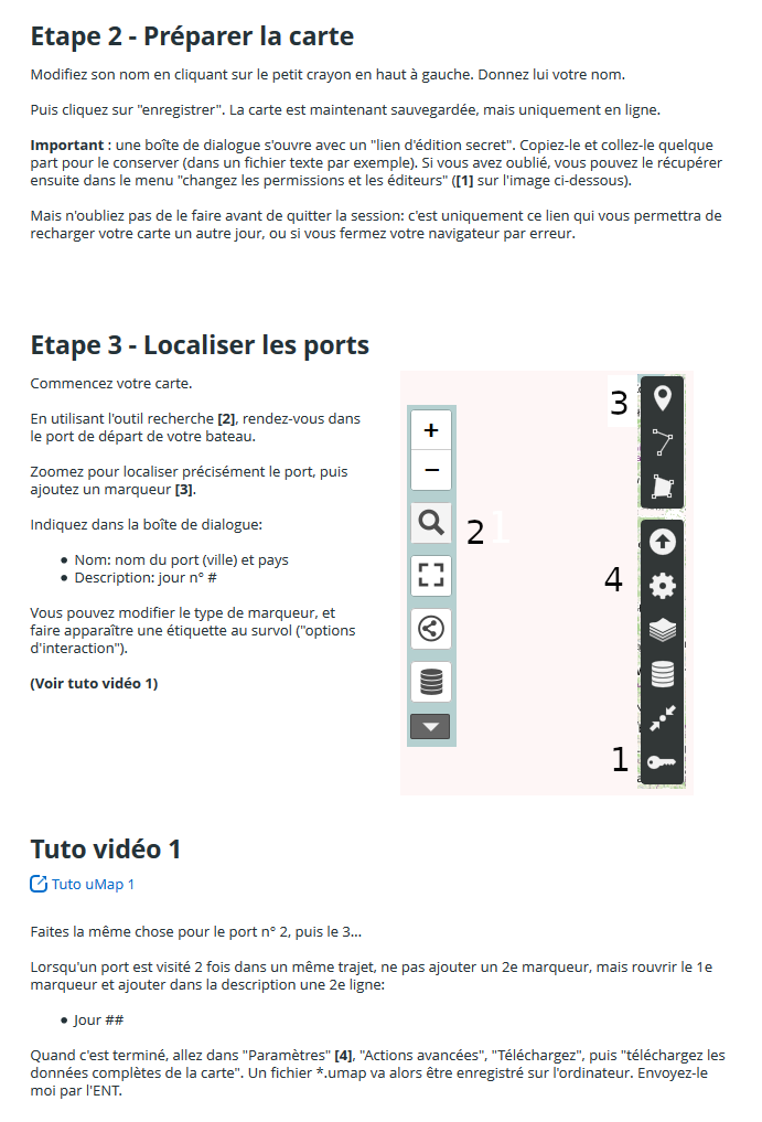 A l’issue de cette première partie, les élèves ont téléchargé leur carte au format *.umap et me l’ont envoyée par l’ENT. J’ai pu les consulter, éventuellement leur demander quelques ajouts ou corrections, avant de leur envoyer la suite du travail à faire.