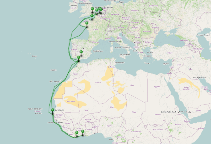 Exemple de production : les escales et trajets de la ligne « Europe Afrique 1 »