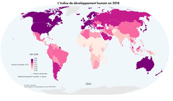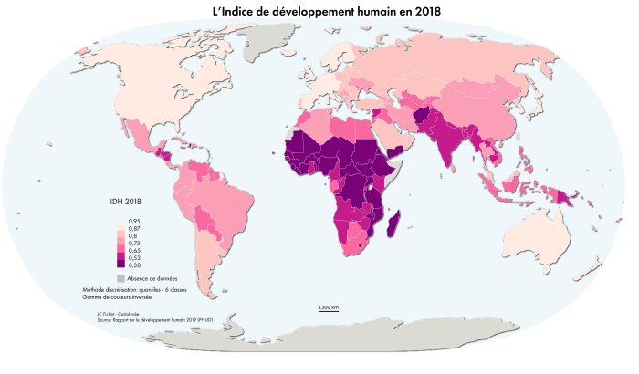 Les élèves reçoivent deux fichiers : le fichier questionnaire et le fichier des données IDH 2018 tirées du Rapport sur le développement humain 2019 des Nations Unies. En parallèle ils s’appuient sur un tutoriel vidéo qui leur permet d’utiliser d’utiliser Magrit, outil de cartographie thématique du CNRS. Comme Khartis, Magrit permet de réaliser de manière simple le traitement cartographique de séries de données.