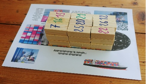 Il s’agit ici pour l’essentiel de la description de l’activité introductive du thème. Elle s’inspire d’une production de « LH Port Center » (sur le site https://lehavreportcenter.com/ateliers/ on peut découvrir les missions du centre et les activités dédiées au public scolaire). Les équipes de « LH Port Center » ont créé un jeu intitulé « Mission Shipplaner » : c’est un jeu de logique et d’équipe qui permet de simuler la fonction d’un shipplaner dont le but est de charger un porte-conteneur en fonction de contraintes (les différents ports visités, le poids des conteneurs, puis leur dangerosité, au cours de 3 missions de difficultés croissantes). C’est un jeu purement logique et non géographique (même si une carte permet de visualiser le parcours du navire).