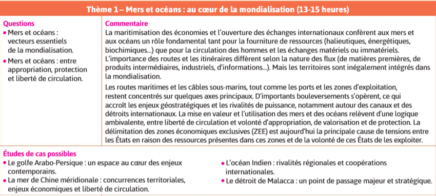 Mondialisation, espace maritime, littoralisation, façade maritime, ZEE, ressources, exploitation, passages stratégiques, flux maritimes.