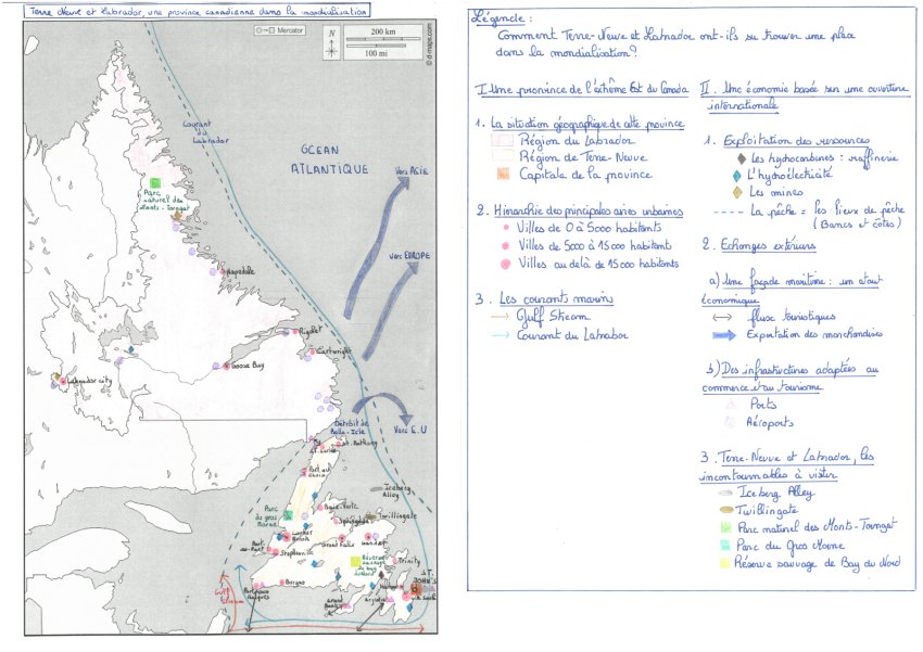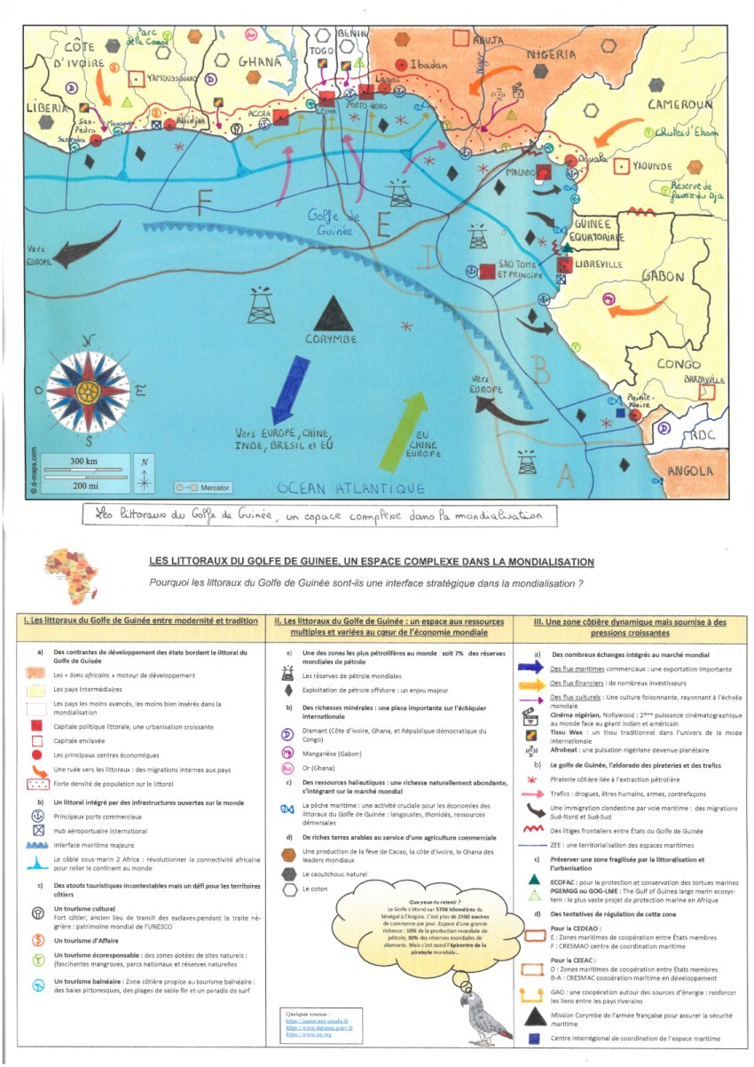 Les légendes sont de mieux en mieux hiérarchisées, ne sont plus de simples descriptions du territoire étudié et répondent de mieux en mieux à une problématique qui devient de plus en plus adaptée au territoire étudié. Le questionnement de la première carte réalisée par les élèves de Le Havre 4, le groupe qui a atteint la finale, est ainsi : « Comment Terre-Neuve-et-Labrador ont-ils su trouver une place dans la mondialisation ? ». Celui de leur cinquième et dernière carte est plus précis en matière de vocabulaire et plus pertinent : « Pourquoi les littoraux du golfe de Guinée sont-ils une interface stratégique dans la mondialisation ? ».