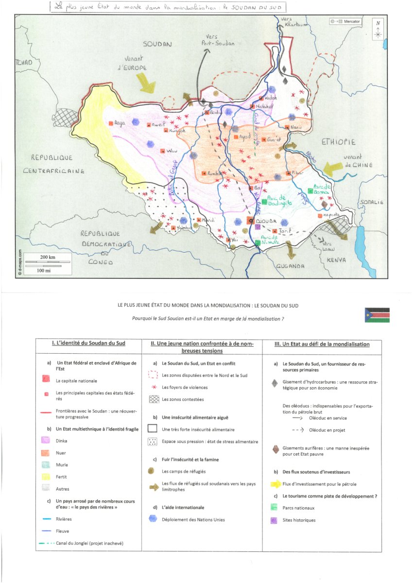 La recherche documentaire, l’élaboration de la légende puis la réalisation de la carte sont accomplies de manière autonome par les élèves en dehors de leurs heures de cours. Chaque binôme a la possibilité de solliciter le professeur pour d’éventuels conseils. Tous n’y recourent pas.